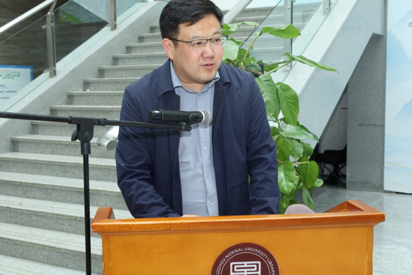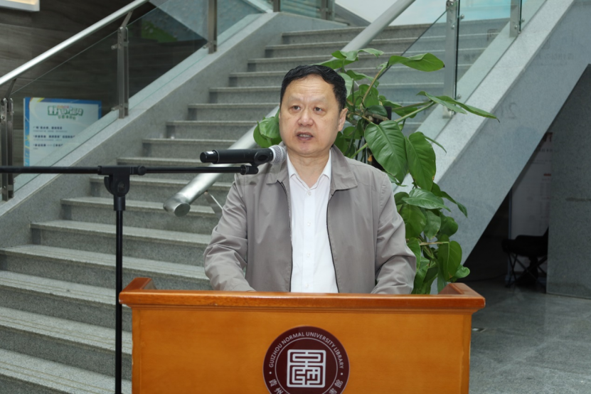 4月22日,贵州师范大学图书馆内书香四溢,嘉宾汇聚一堂,“传承经典之火•培育时代新人”——2025年4·23校园阅读季暨“典耀中华”主题读书行动启动仪式隆重举行。活动以传统经典、当代经典、红色经典为核心,通过“阅读+教育+实践”三位一体的模式,引导师生在书香中感悟文化的力量,在传承中履行使命。贵阳孔学堂文化传播中心、贵州出版集团、贵州省新华书店等文化单位领导、各学院、各部门负责人及师生代表100余人齐聚一堂,共同见证这一文化盛事。活动由图书馆党总支书记刘朋涛主持。