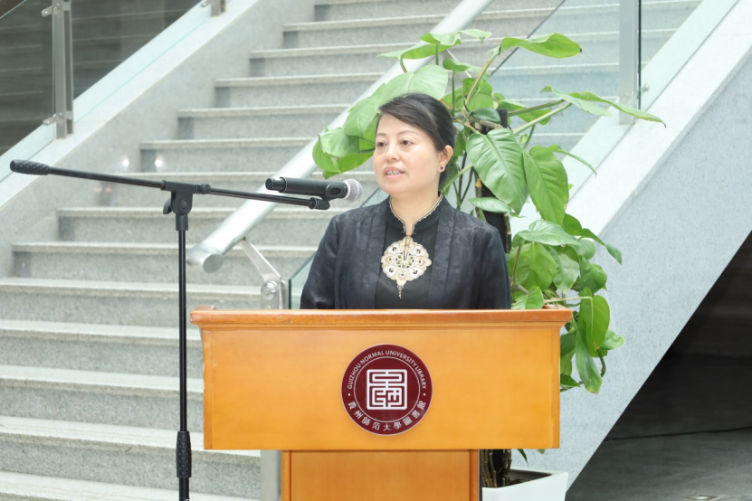 《贵州师范大学馆藏珍稀古籍丛刊》正式发布。罗筱霖馆长介绍了这套丛刊出版的由来及意义。这一套规模宏大的丛书,包括《大般若波罗蜜多经》(卷十三)、《通志》(二百卷)、《明会要》(八十卷)、《史记纂》(二十四卷)、《六臣注文选》(六十卷)、《考古辞宗》(二十卷)和《唐文粹》(一百卷)。她指出,这套丛刊是迄今为止贵州人民出版社单书号图书册数最大的丛书,这些古籍不仅构成了贵州师范大学图书馆馆藏文献的重要组成部分,而且被纳入“国家古籍珍贵名录”,成为极为珍贵的文献资源。该丛书共计200册影印出版,其体量之庞大、意义之深远,实不容小觑。丛刊的系统整理和出版,不仅展现了学校古籍保护成果,更有利于惠及师生研习。与会的孔学堂戴建伟主任、出版集团王旭副总经理、副校长支启军和馆长罗筱霖共同为这套丛刊揭幕,标志着丛刊的正式发布。