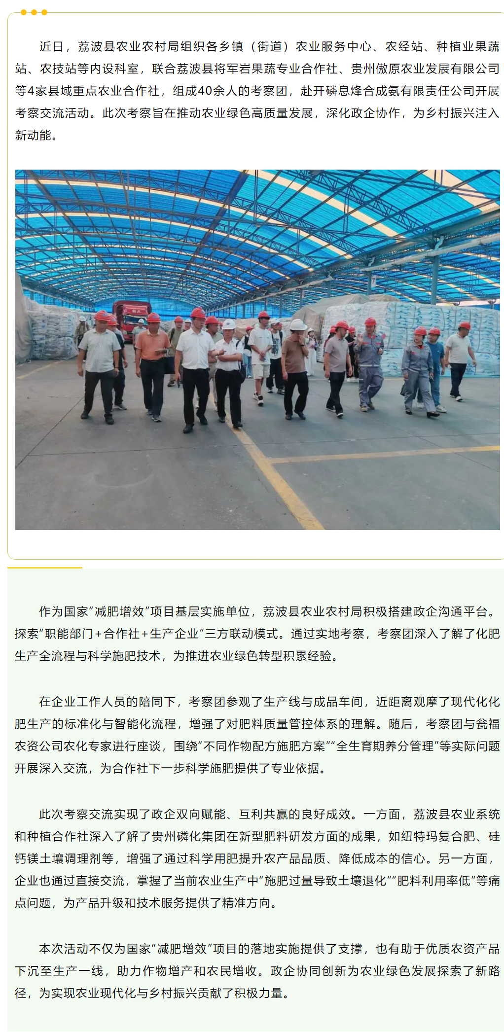 荔波县农业系统与合作社赴合成氨公司考察