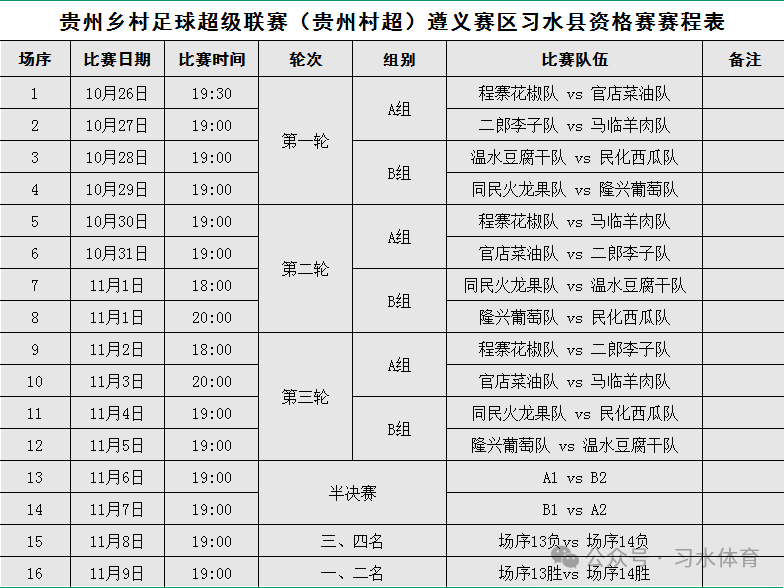 秋染黔北,绿茵待战!“赛动黔景·悦动遵义”贵州乡村足球超级联赛(贵州村超)遵义赛区习水县资格赛,10月26日(本周日)19:30 将在习水体育场正式拉开战幕。