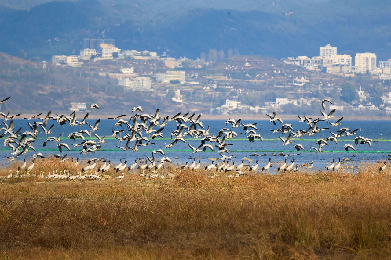 作为贵州最大的高原天然淡水湖,黑颈鹤、灰鹤等200多种珍稀鸟类在此栖息、繁衍,是“世界最佳湿地观鸟区”之一。