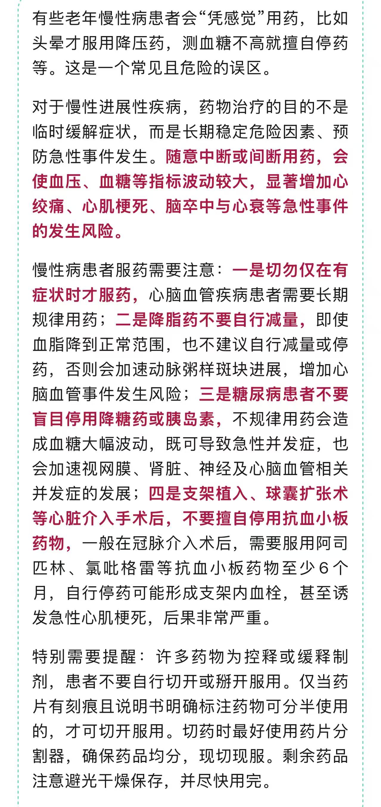 慢性病患者用药,“凭感觉”更踏实……是真是假?