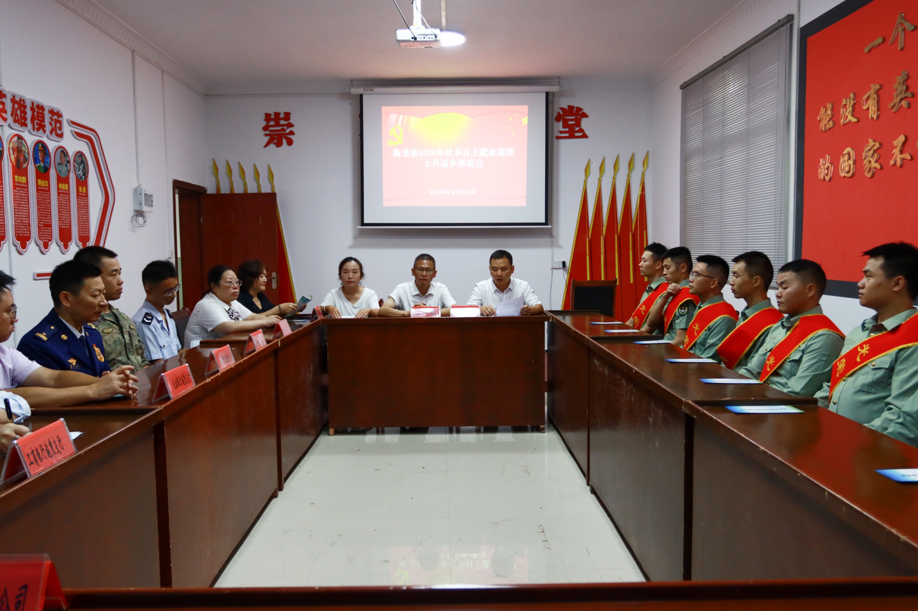 近日,在施秉县烈士陵园会议室,一场以“铭记军旅初心·助力返乡发展”为主题的自主就业退役士兵返乡座谈会在此举行。县退役军人事务局联合县人社局、县税务局、县人武部、县消防救援队、农业银行、工行、建行等10余家单位相关负责人,共同迎接10余名退役士兵光荣返乡,共商就业创业发展路径。