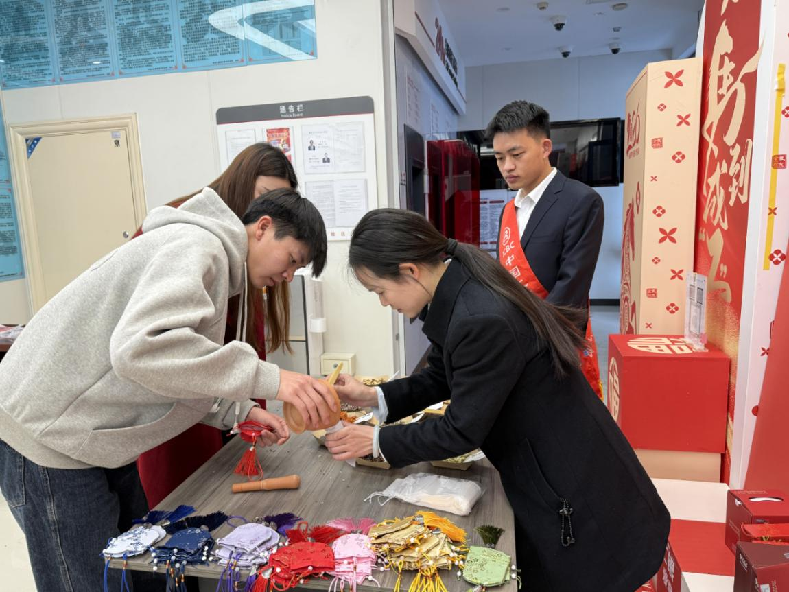 活动现场,工作人员提前布置场地、备齐物料,全程细致引导、贴心服务。中药香囊区准备艾草、玫瑰等天然香料,客户按需挑选配比、研磨装袋,清香怡人、寓意安康;非遗漆扇体验环节,大家细心调色、浸漆定型,一件件纹理雅致、寄寓吉祥的漆扇次第呈现,在温馨互动中拉近与客户的距离。