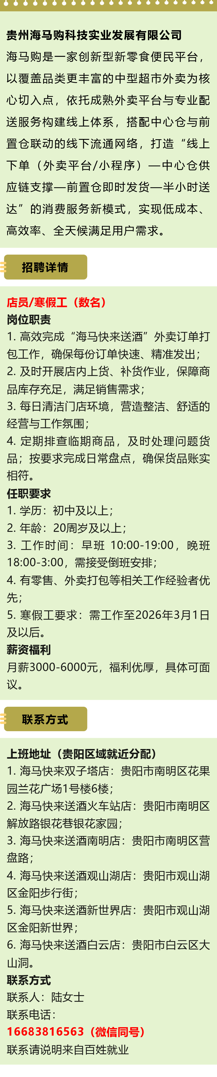 【知名企业】贵州海马购招聘店员/寒假工数名!贵阳区域就近分配!