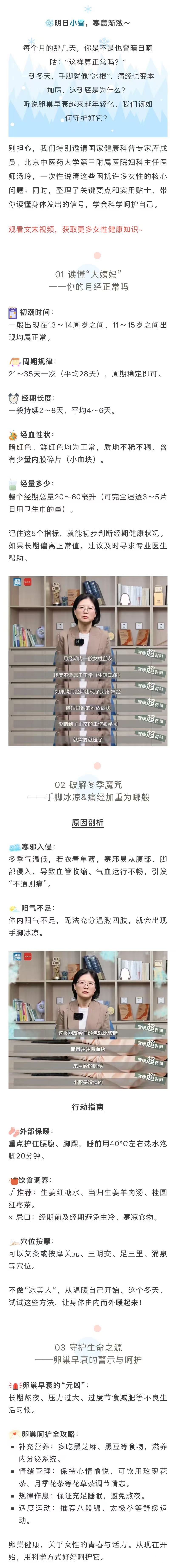 明日小雪至!告别“冰美人”,女性冬季养生3大重点请收好~