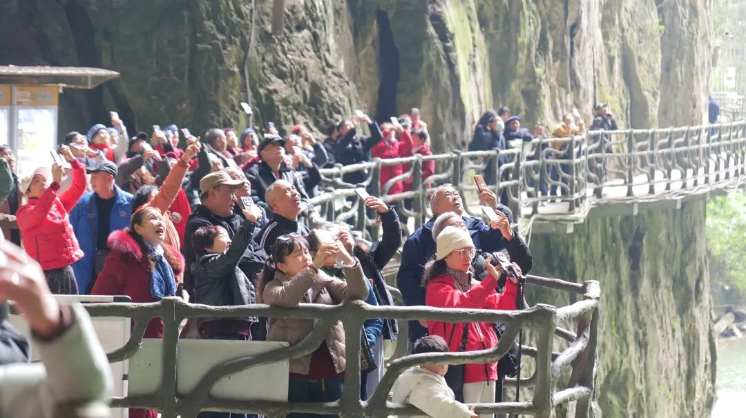 游客量持续攀升,景区服务保障同步提档升级。全员在岗值守,新增游船、观光车,优化餐饮服务,一系列贴心举措赢得游客好评,让游客玩得安心又舒心。