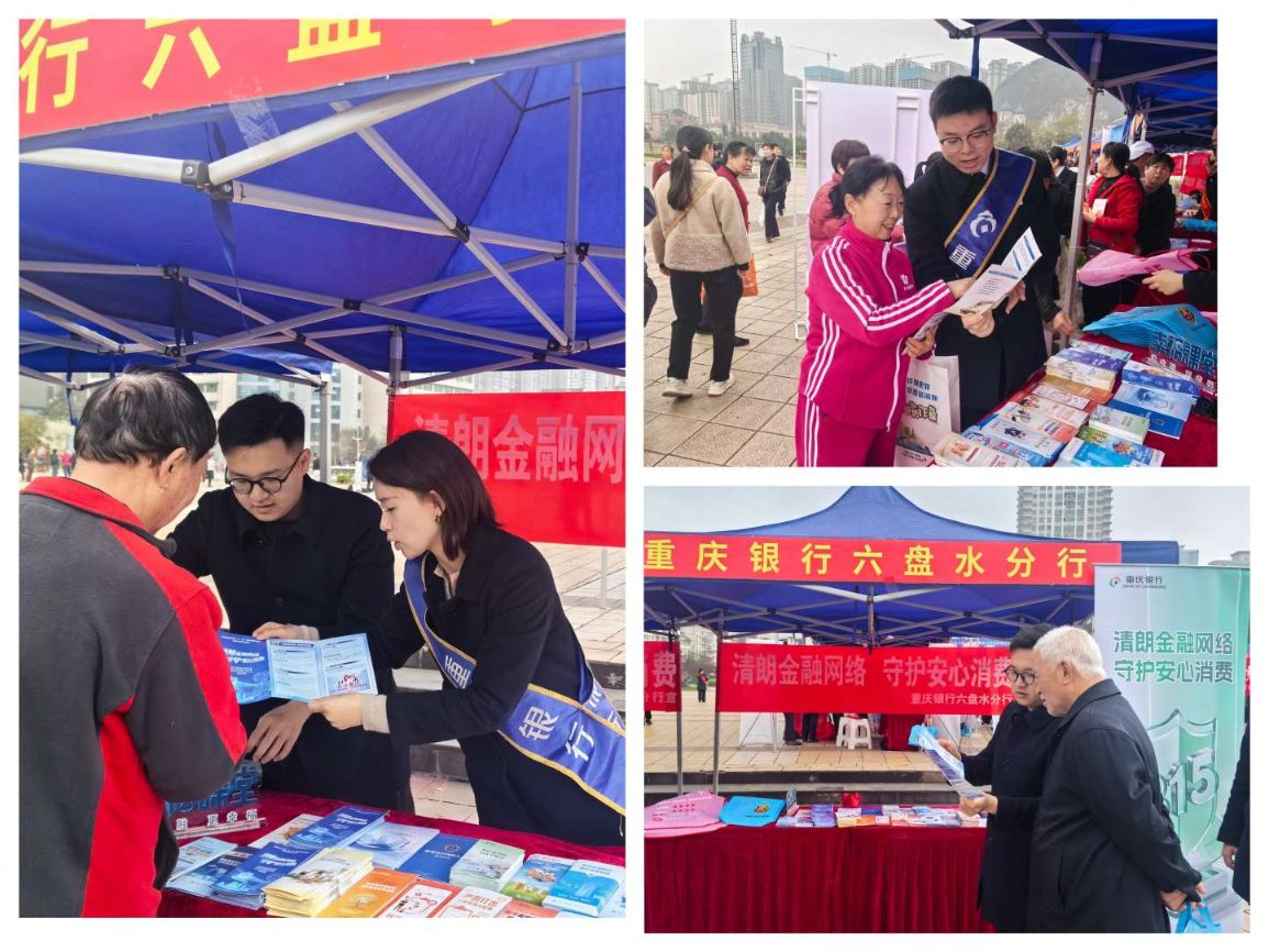 3月11日上午,重庆银行六盘水分行在人民广场开展以“清朗金融网络 守护安心消费”为主题的宣传活动。