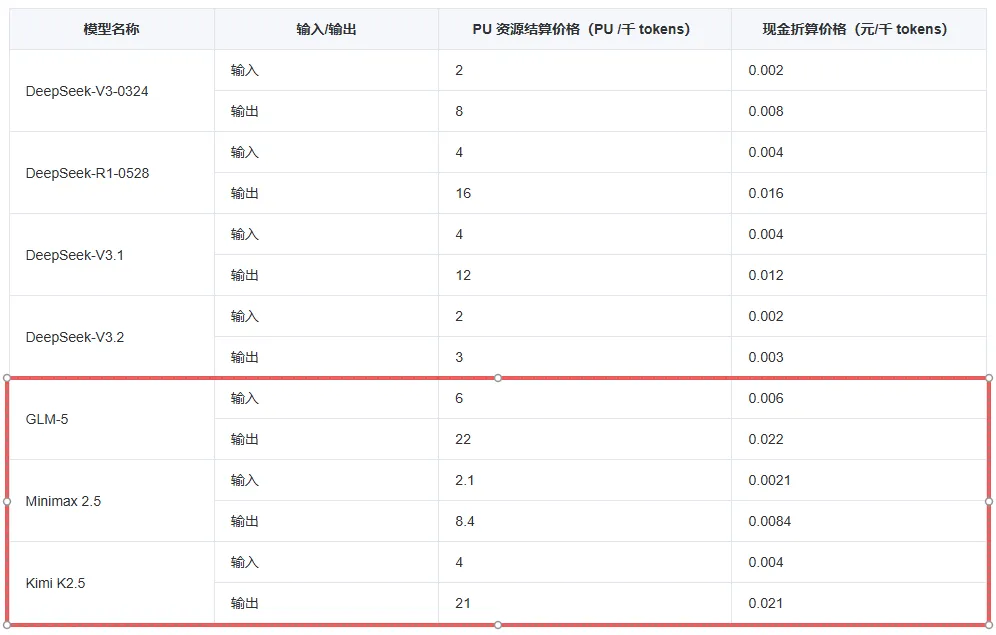 其中,GLM 5、MiniMax 2.5、Kimi 2.5三个模型将结束限时免费公测,转为正式商用服务。