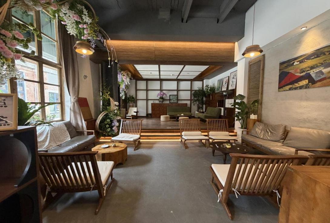 这份来自山野的基因,让花漫川从一开始就不止是一家咖啡馆。它的空间布局颇为讲究——进门处设有一个抬高的区域,可以灵活变换为小舞台。此前就已举办过爵士乐小演出、读书会、戏剧等活动。