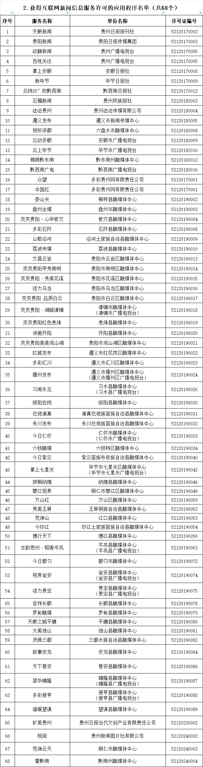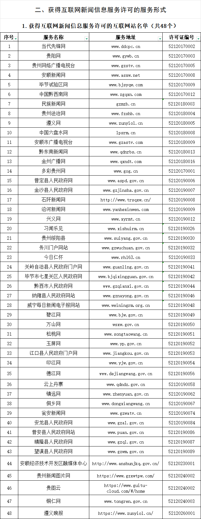 贵州省互联网新闻信息服务单位许可信息(截至2026年3月31日)