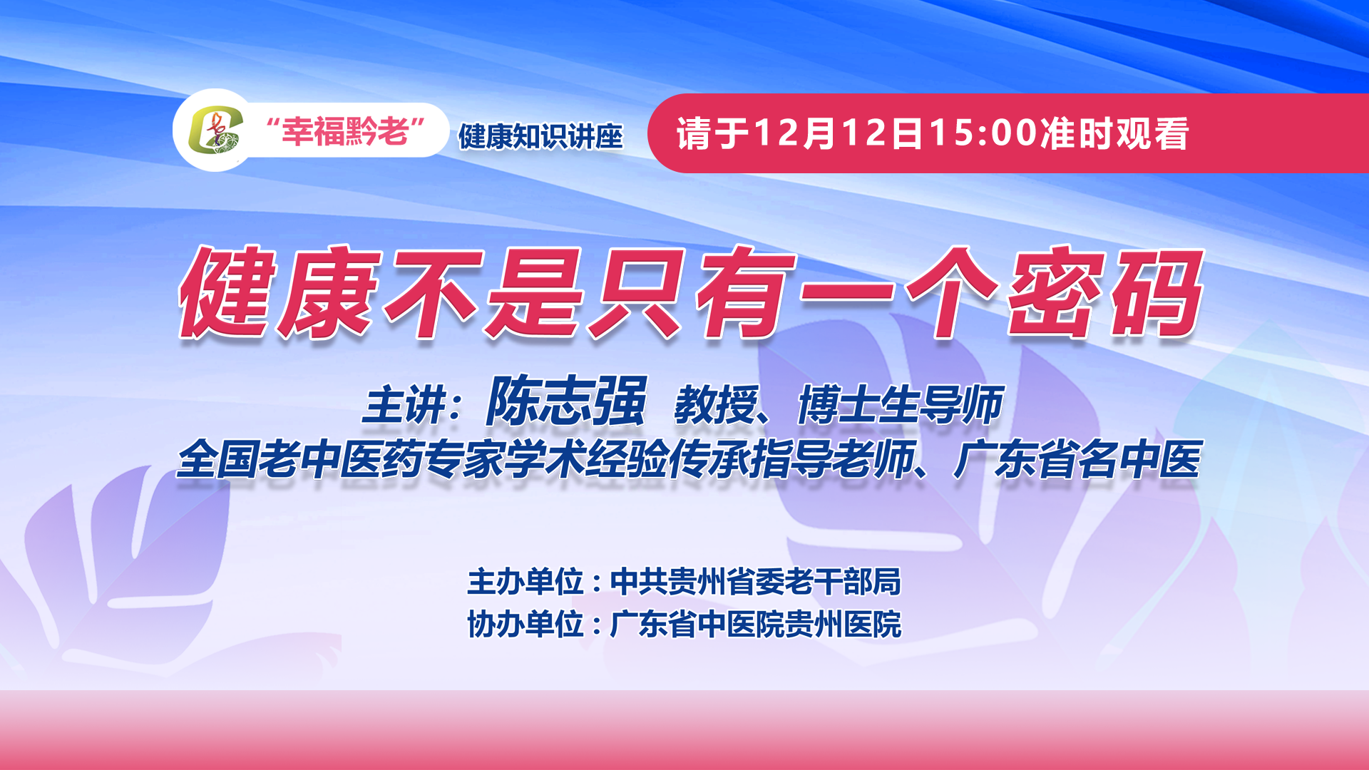 “幸福黔老” 健康知识讲座预告
