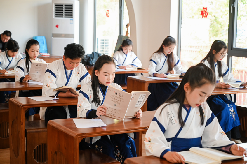 第四站,采风团一行抵达都拉乡上水村言语堂民宿,刚走进民宿,便被这里浓郁的文化气息所浸润。不同于普通民宿的简约装修,言语堂民宿以“文化·生计·社群”为核心理念,将国学文化融入每一个细节。