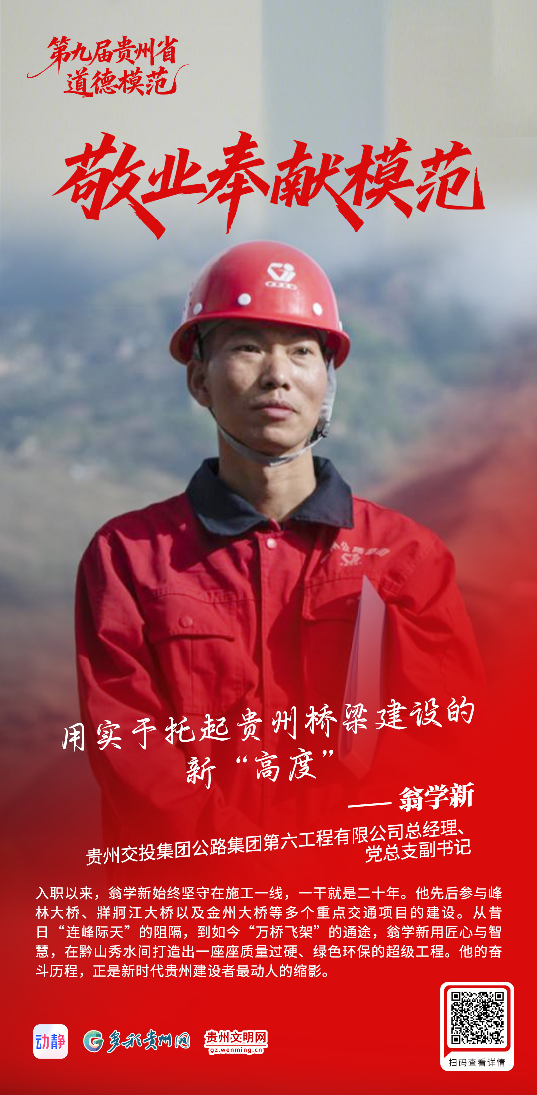第九届贵州省道德模范风采|翁学新:用实干托起贵州桥梁建设新“高度”