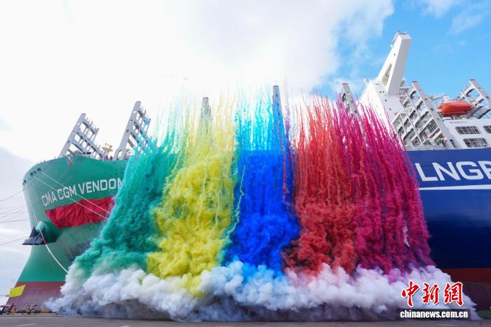 第三艘全球最大24000TEU级LNG双燃料集装箱船提前8个半月交付。沪东中华造船(集团)有限公司供图