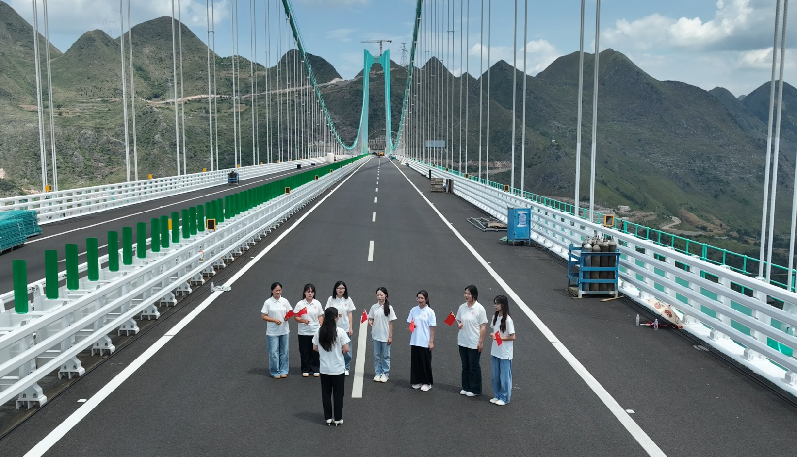 “贵州的桥梁奇迹,是中国技术链与产业协同创新的缩影,更凝聚着建设者们‘一张蓝图绘到底’的实干精神。”贵州师范大学教师王亚丽,在这堂行走在大桥之上的思政课中为同学们解惑到,“作为高625米、全长2890米、主跨1429米的单跨钢桁梁悬索桥,花江峡谷大桥正以横竖‘世界第一’的硬核实力,演绎着现代工程技术与自然天险的激情对话。”