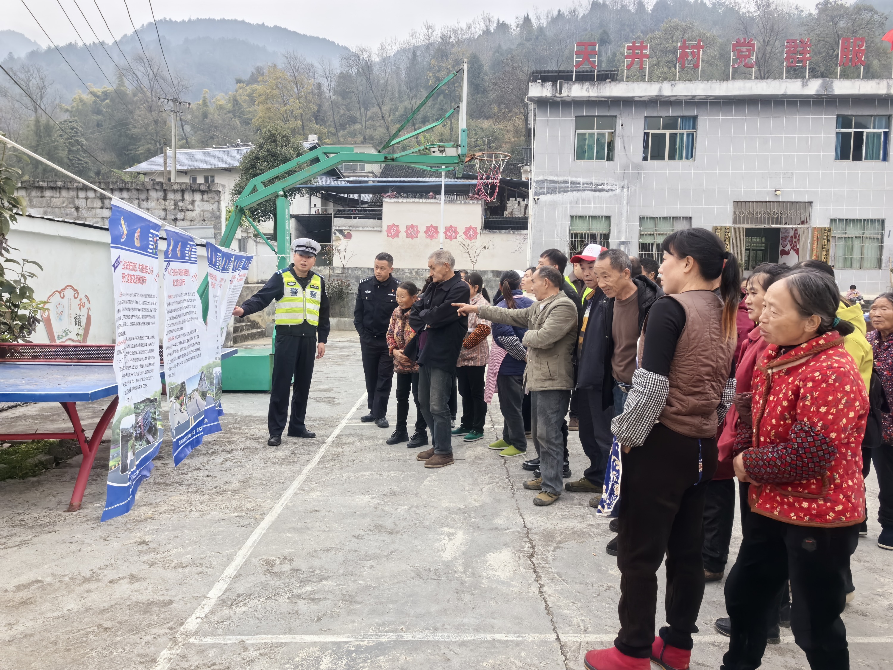 活动现场,民警结合天井村道路弯道较多、农用车出行频繁的实际情况,以“拉家常”的方式与村民面对面交流。针对农村地区常见的交通陋习,重点讲解了“一盔一带”安全守护、农用车违法载人、无牌无证驾驶、酒驾醉驾、超员超速等交通违法行为的危害。