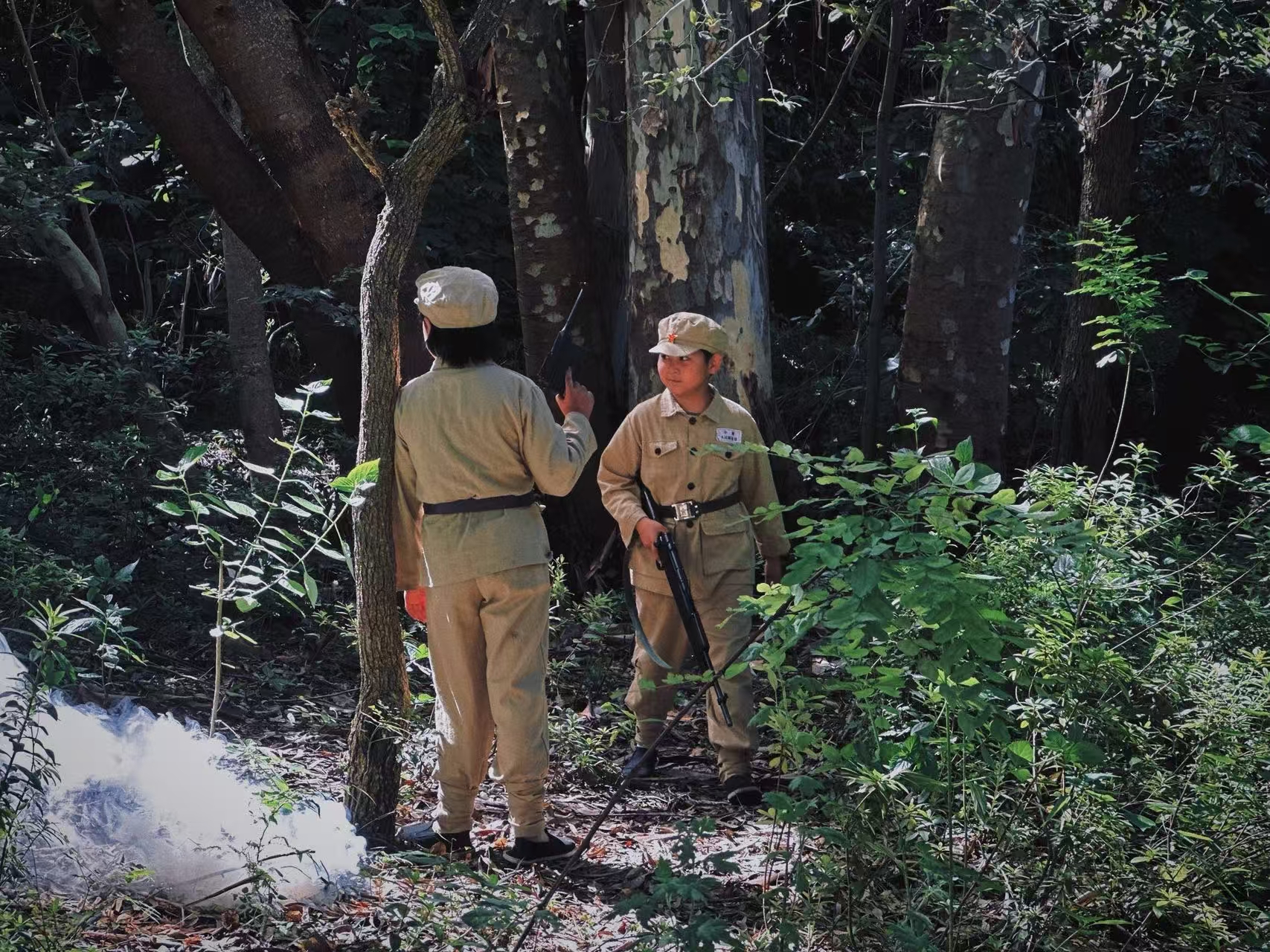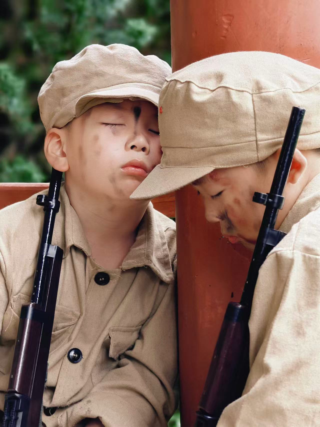 红色基地场景:拍摄地选在安顺、铜仁等真实红色地标,道具枪虽不发弹,但枪身完全按照历史复刻,声光烟雾在保证绝对安全的前提下尽量还原真实,背包里塞着仿造的“行军干粮袋”;