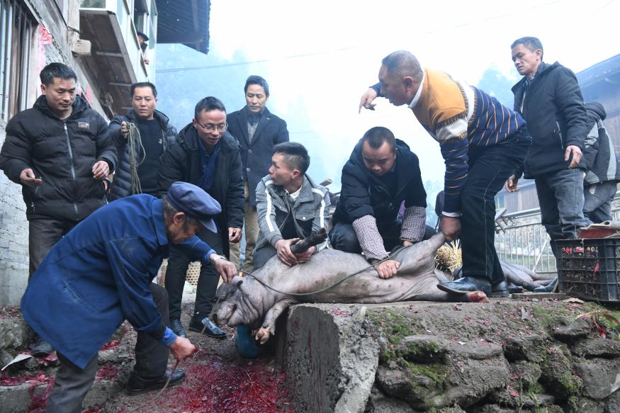 雷山苗寨过苗年杀年猪 李玉贵摄