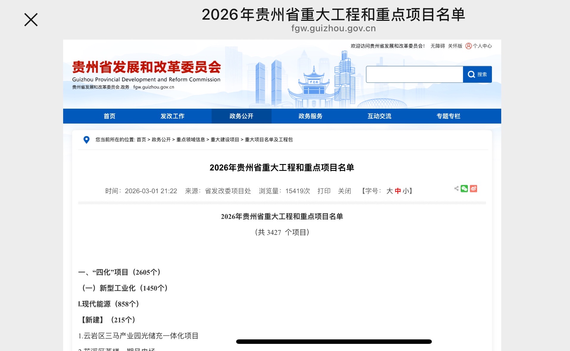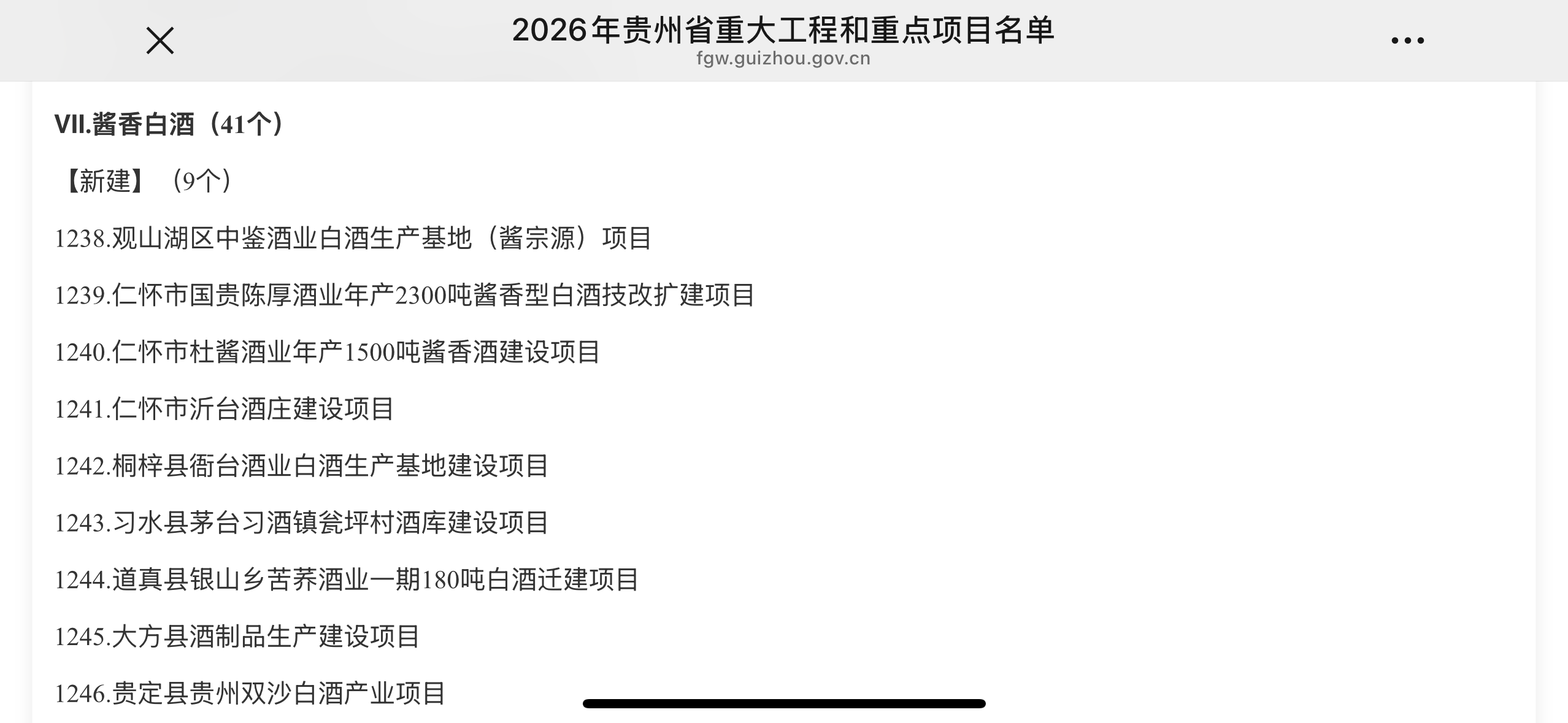 贵州省发展和改革委员会3月1日发布, 2026 年重大工程和重点项目名单,全省共规划 3427 个项目,涵盖 “四化” 建设、基础设施、民生工程三大板块。其中,41 个酱香白酒项目被纳入规划,含新建、续建、收尾、预备四类。
