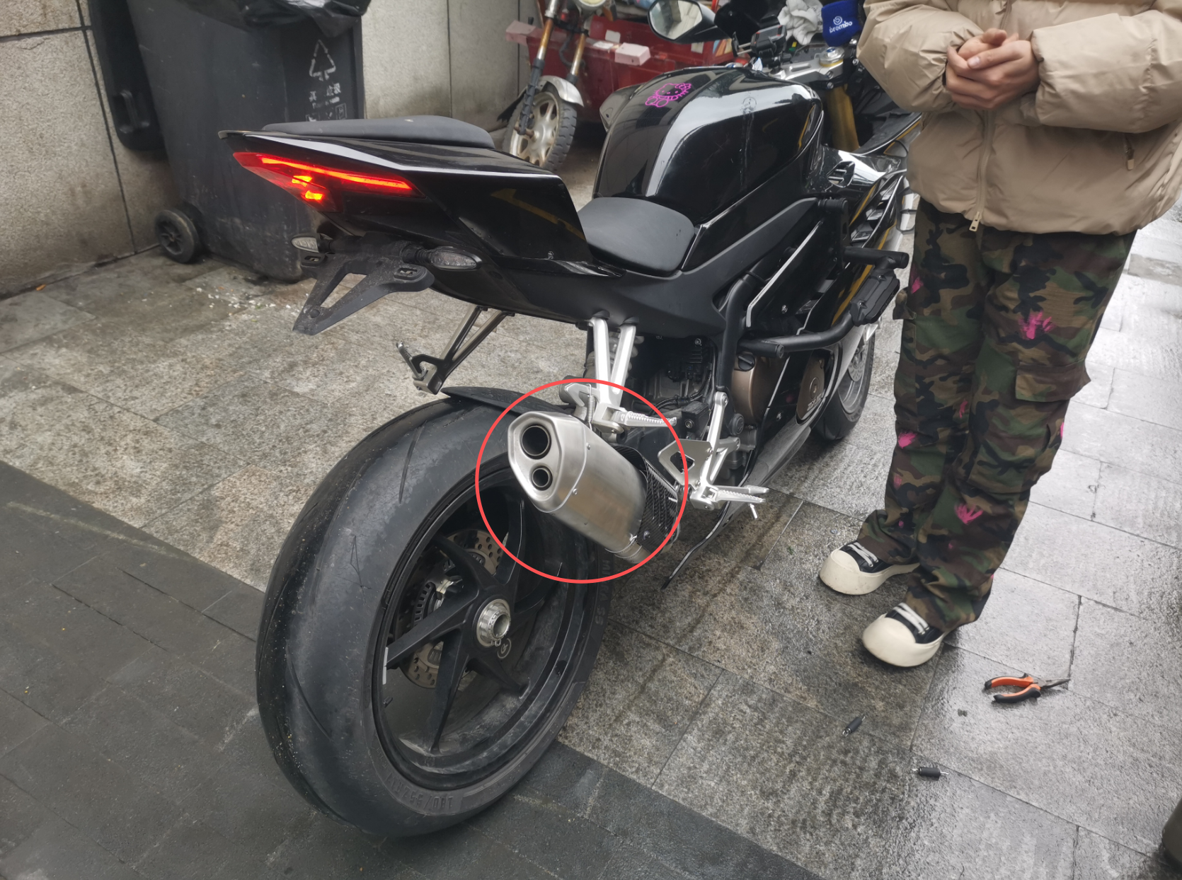 发现该车排气管是经过改装的