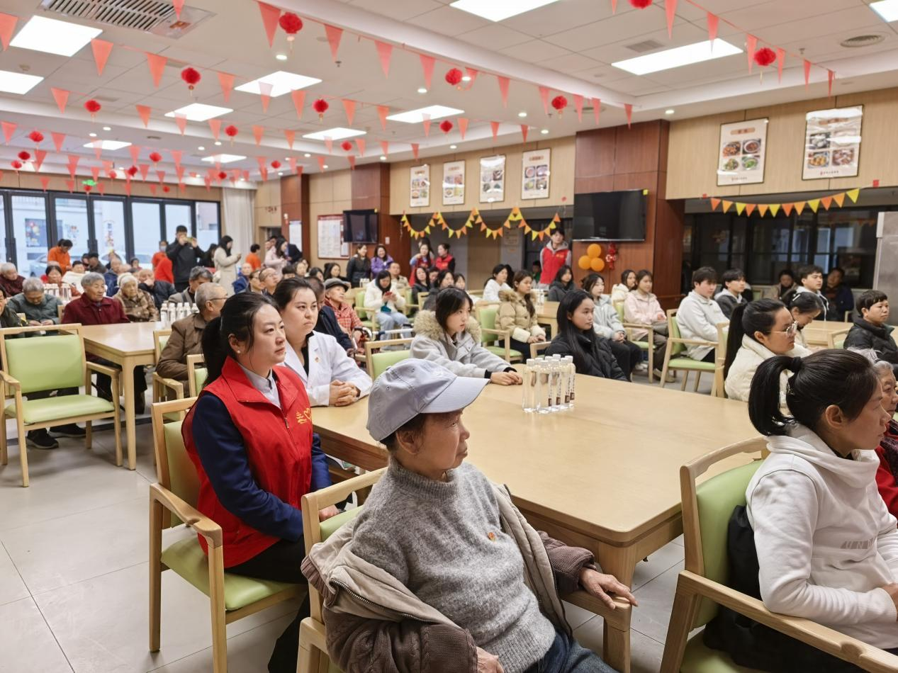 义诊服务区,医疗志愿者为老人们提供了细致的视力检查、裂隙灯检查等专业服务,并耐心解答各种健康咨询。与此同时,其他志愿者们分工协作,有的为长者测量血压、血糖,有的打扫整理院内环境,有的则与长者们一起包饺子、话家常。活动现场还准备了丰富多彩的文艺互动节目,志愿者与长者们同乐,气氛温馨融洽。