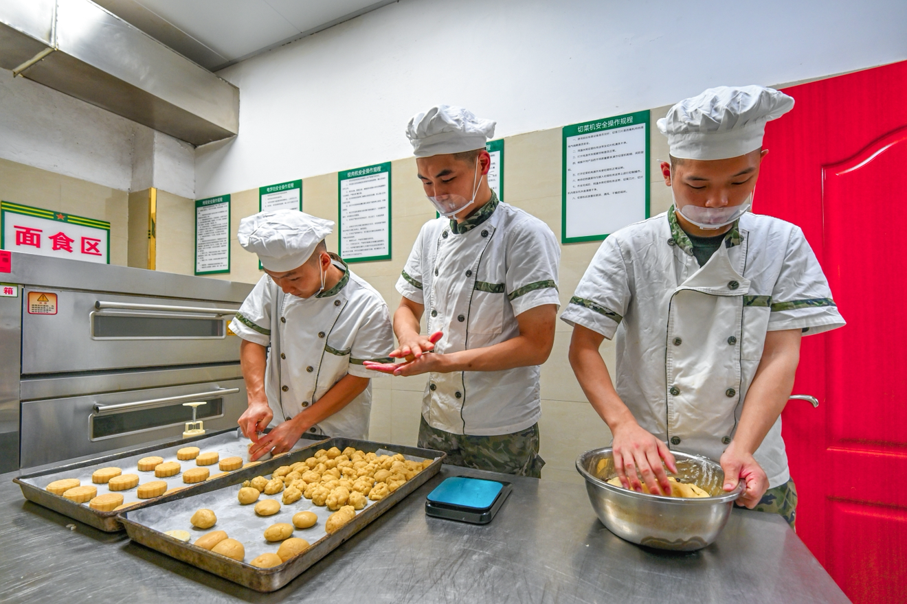 篮球场上,每一次精准传球、每一次精彩投篮,都引来阵阵欢呼,击掌瞬间,传递着战友间的信任与情谊;月饼DIY现场,官兵们亲手揉面、包馅、压模,将对家人的思念与对祖国的祝福,都融入一个个精致的月饼中。
