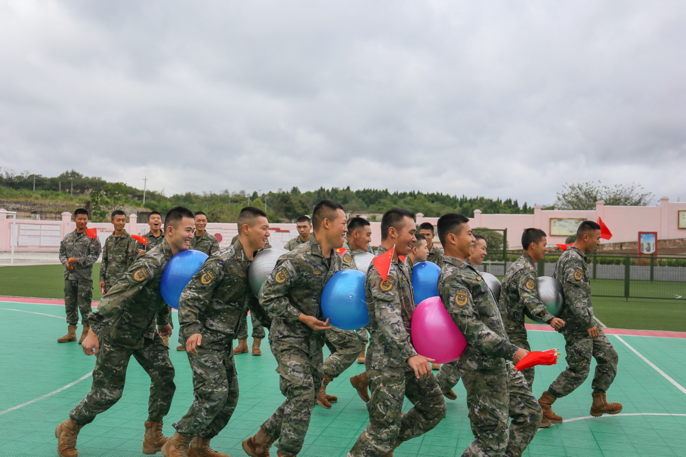 游园会更是热闹非凡,“快跑毛毛虫”项目里,大家手挽手、肩并肩,迈着整齐的步伐奋力冲刺;各类趣味游戏前,官兵们踊跃参与,在协作与竞争中,尽情释放活力。