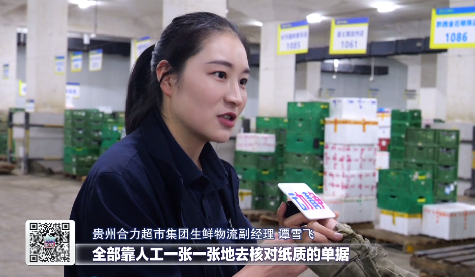 贵州合力超市集团生鲜物流副经理谭雪飞告诉记者,刚开始收取供应商的证件资料全部靠人工一张一张去核对纸质单据,每个单品要核对三张,每天是几千张,要花三个小时,更新系统以后,商品的标签、信息、订单量、订单的件数全部在标签上,进行标签扫描,整个订单信息已经进入了系统。