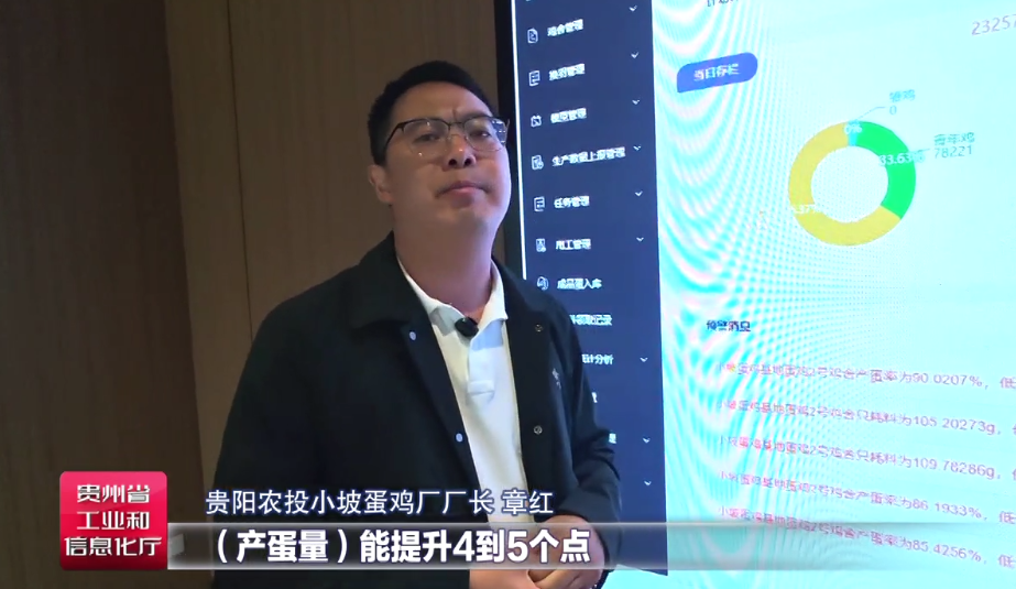 贵阳农投小坡蛋鸡厂厂长章红告诉记者,现在平台有个报警,比如说哪一栋鸡舍采食量不够、产蛋率没达标,在手机端就有提示,可以收到查看,现在采食量、产蛋量都有逐步提升,产蛋量能提升4到5个点。