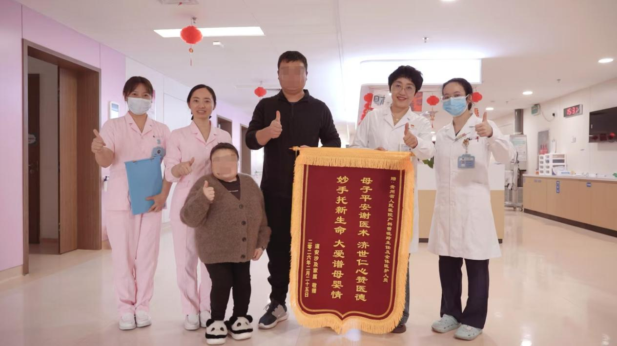 近日,一位特殊的产妇专程来到贵州省人民医院,为产科医护人员送上一面锦旗。