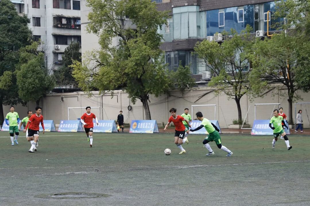 经过激烈角逐,毓秀路街道不东队以7:1战胜水东路街道水东筑梦队;八鸽岩街道LOVE贵旅足球队以3:1击败茶园路街道道在律师队;八鸽岩街道朋心队与三桥路街道踏破雄关队战成3:3平;盐务街街道先锋FC队则以7:1力克渔安街道越界影城红后队。