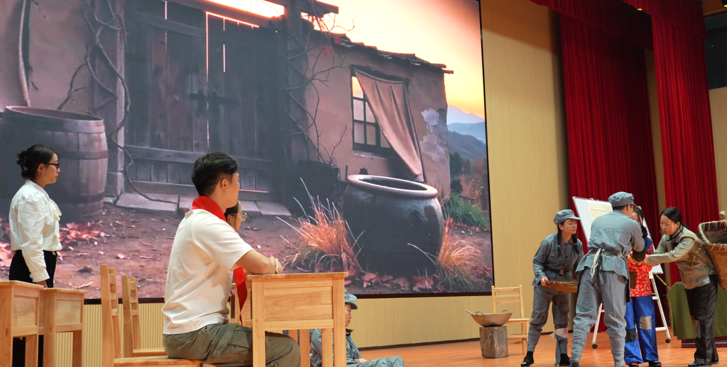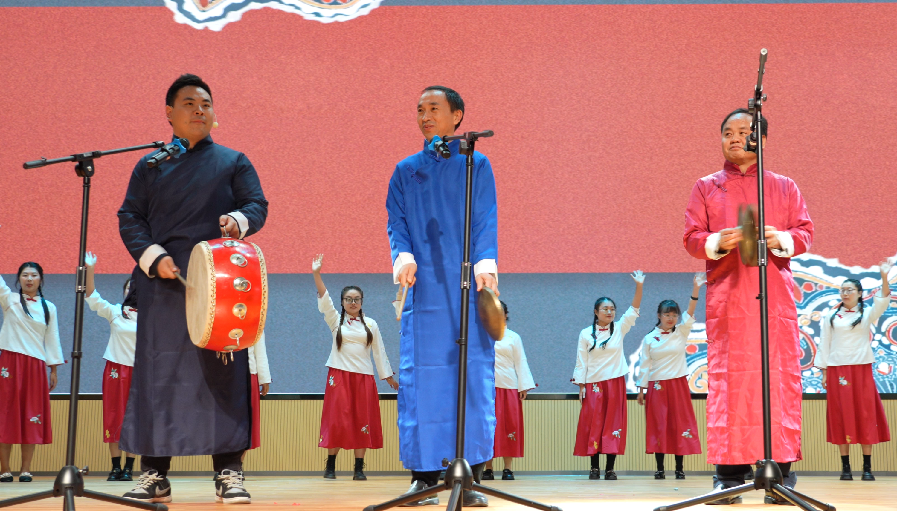 此幕聚焦教育者的初心与传承。贵阳贵安小学数学教研员带来朗诵《数学之光·追梦同行》,倾诉数学教师备课、授课、创新教学的日常坚守;云岩区初中教师以朗诵《数学之光,照耀成长》,展现数学教育对学生从懵懂到自信的深远影响;白云区小学教师通过情景剧《数学之光,代代相传》,再现校园师徒结对、同事互助的温暖画面,传递教育经验的接力传承;观山湖区小学教师以舞台演绎《数韵华章·少年说》,展现学生在数学滋养下的成长蜕变;贵安新区初中教师以合唱形式演绎《数学辞》,将数学知识与文学韵律完美融合;修文县小学教师以创意混搭展演《数你有板有演》,融合游戏、手工等形式激发数学学习兴趣;开阳县初中教师以课堂情境剧《旋转图形的绘制》,还原几何教学中教具演示、动手操作的实践探索;贵阳贵安初中数学教研员以朗诵《擎智慧之火,照区域之光》,展现数学教育工作者深耕教学、助力区域发展的责任担当。