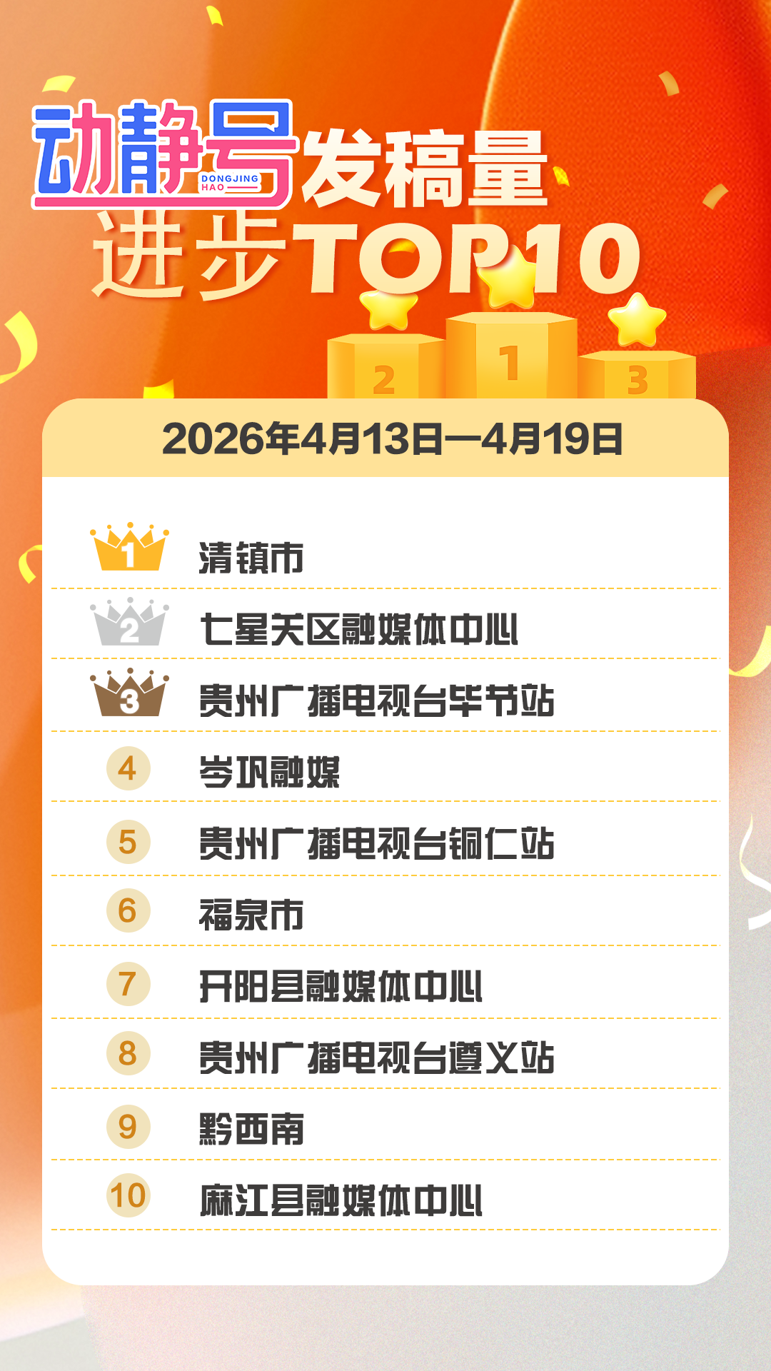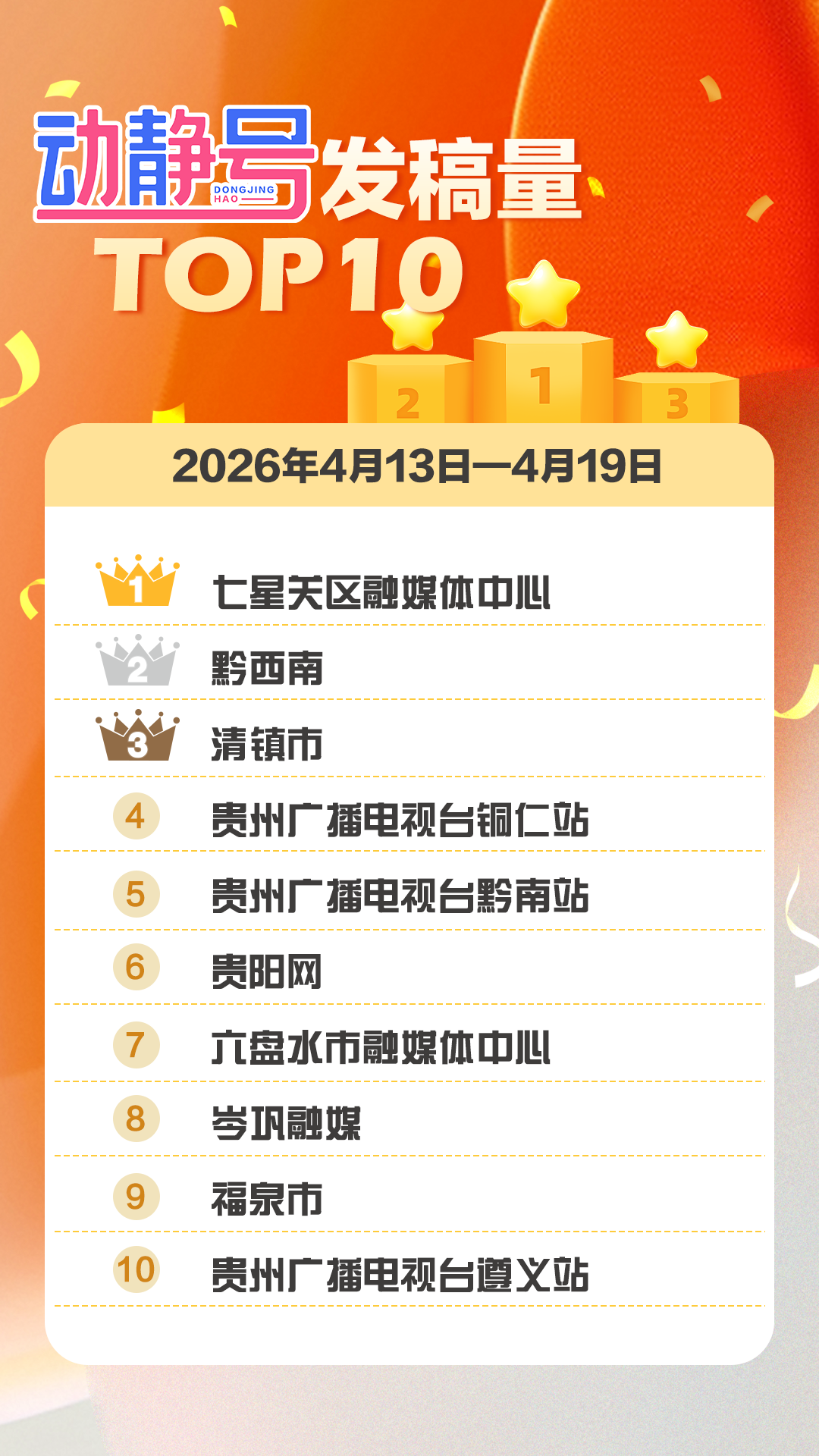 发稿量方面,清镇市、七星关区融媒体中心、贵州广播电视台毕节站位居前三,与上周发稿量相比,增量均突破20条;第四名至第十名单周发稿增量均突破15条,整体创作势头强劲。