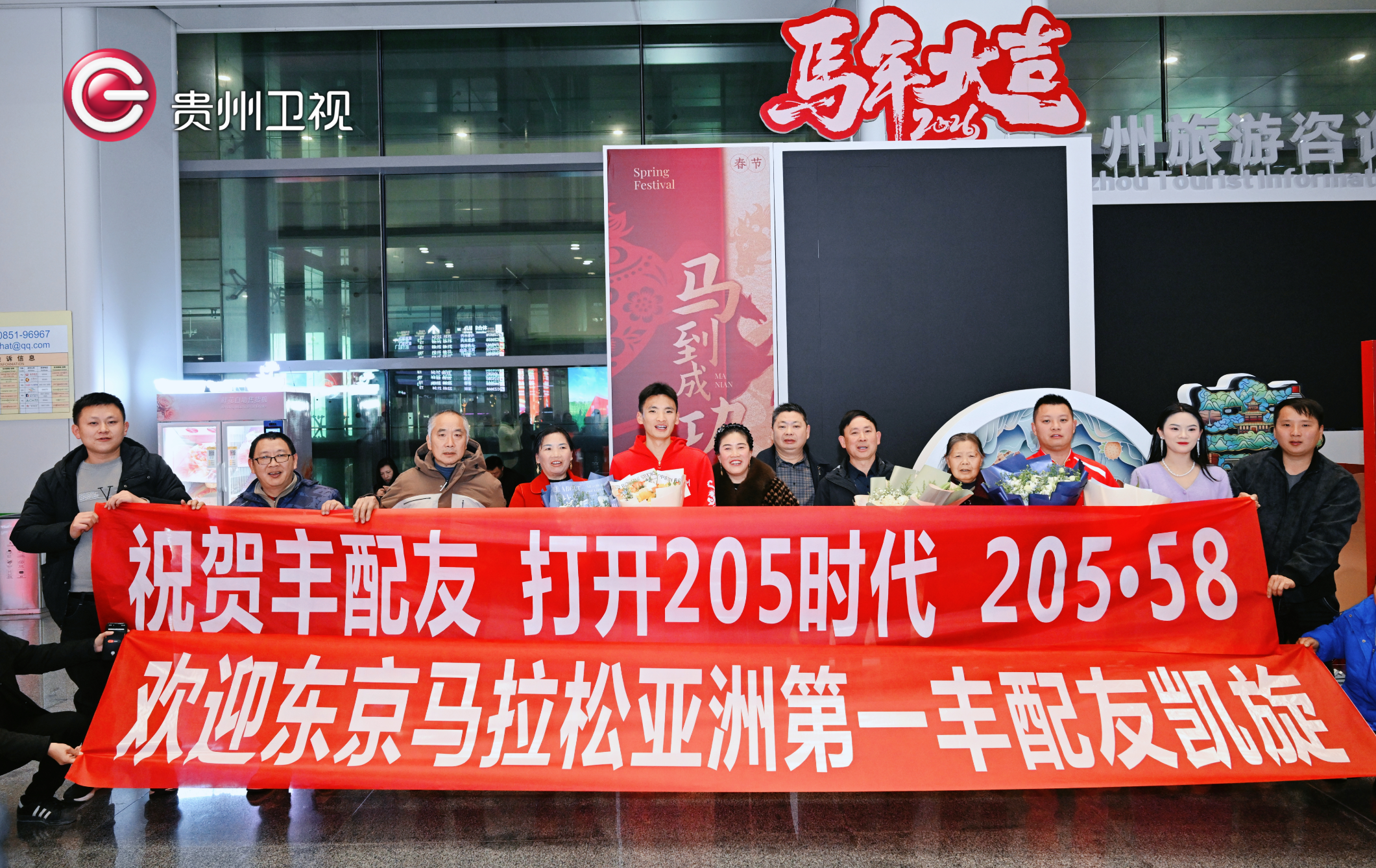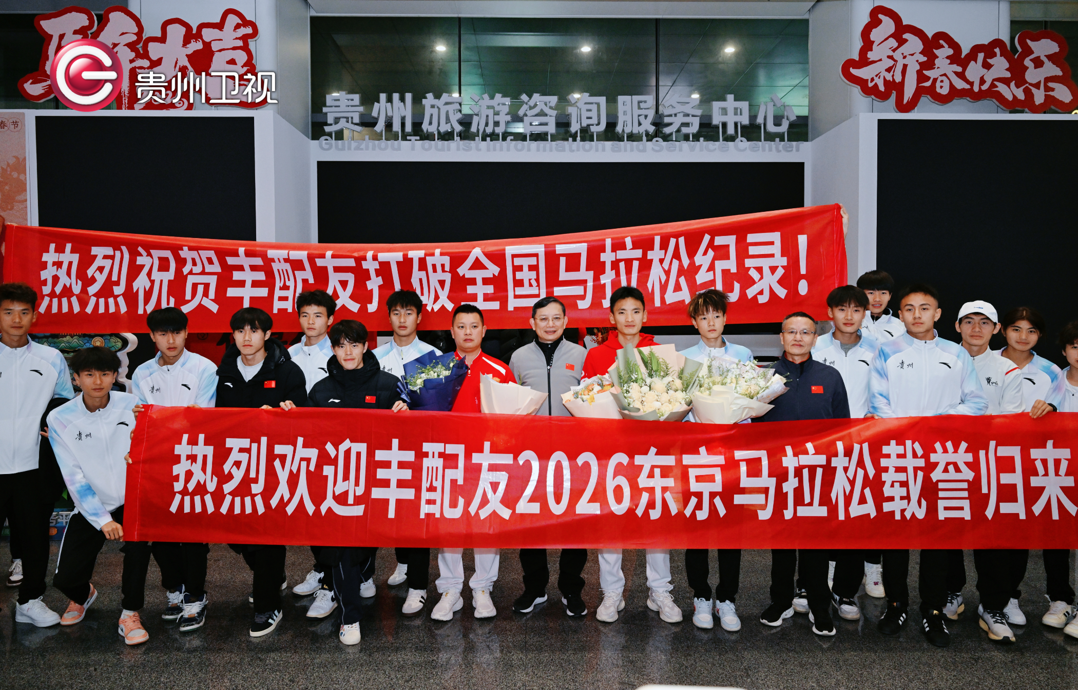 3月2日晚,贵阳龙洞堡机场被掌声、欢呼声和鲜花簇拥,在东京马拉松以2小时05分58秒刷新全国纪录、历史性跑进“205时代”的贵州健儿丰配友载誉归来,家乡人民以最热烈的方式迎接这位为国争光、为省添彩的运动员。