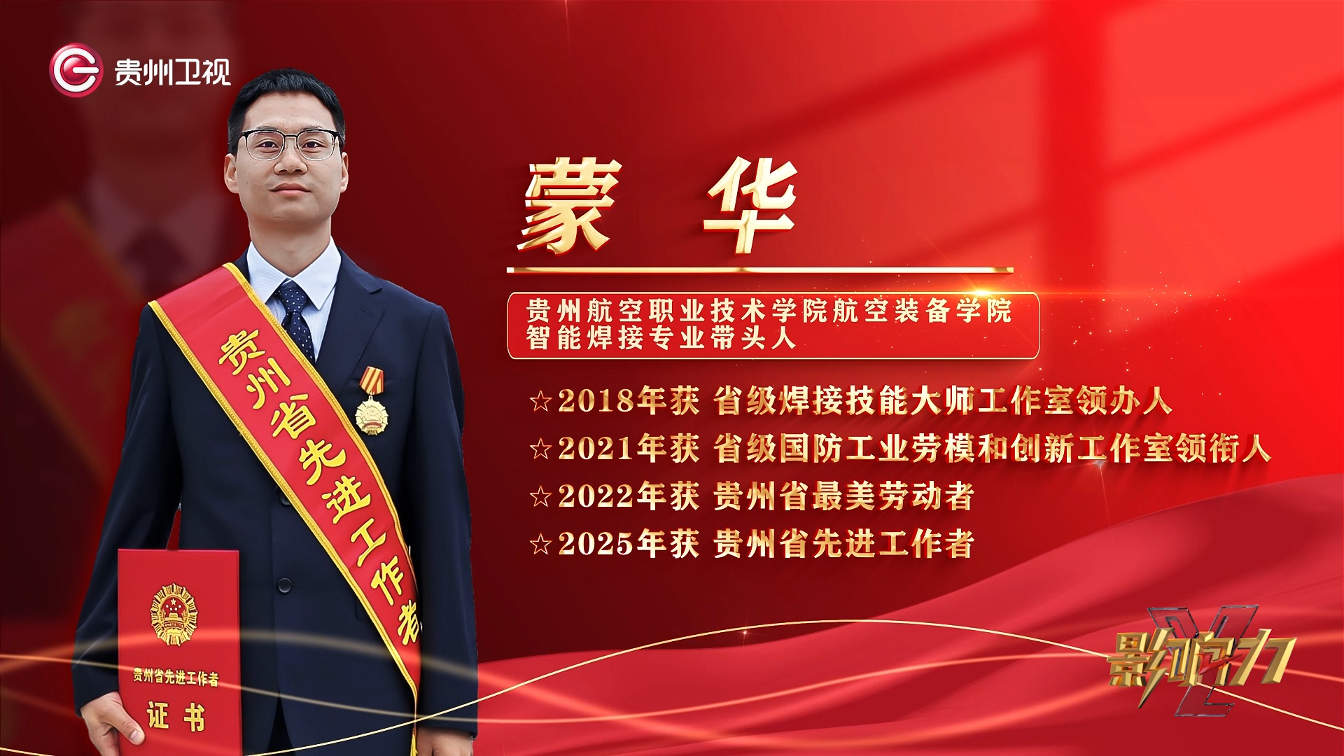 蒙华,贵州航空职业技术学院航空装备学院智能焊接专业带头人,省级焊接技能大师工作室领办人,省级国防工业劳模和创新工作室领衔人、贵州省先进工作者,贵州省最美劳动者。