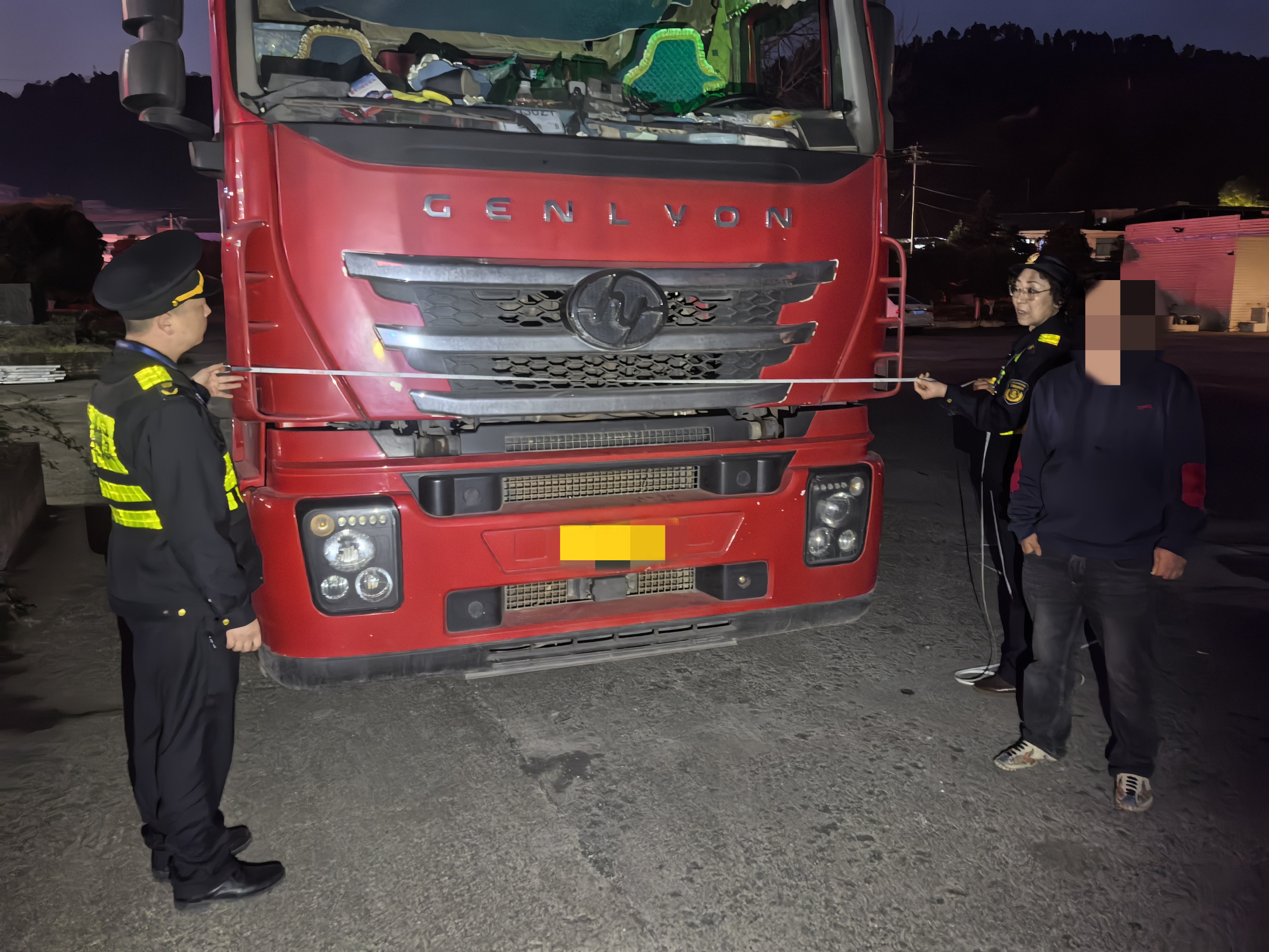 在案件办理过程中,执法人员严格按照《超限运输车辆行驶公路管理规定》,对货物装载源头及收货单位等信息进行溯源核查,但当事人无法提供货运源头和接货单位信息,也不能出示合法有效的货运单据,货物来源存在疑点。目前,按照部门联动机制,该线索已移交修文县自然资源局作进一步核查处理。