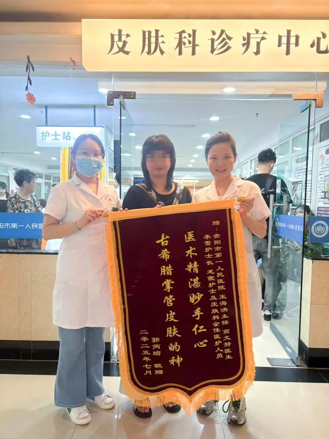 曾有位老年患者因带状疱疹后遗神经痛彻夜难眠,子女带着她辗转多家医院。到贵阳市一医后,王海洪不仅为她制定止痛方案,还常打电话询问病情,指导用药。“王主任不是亲人,却比亲人还上心。”患者康复后,家属送来锦旗,上面写着“古希腊掌管皮肤的神”——这是患者对她最高的礼赞。