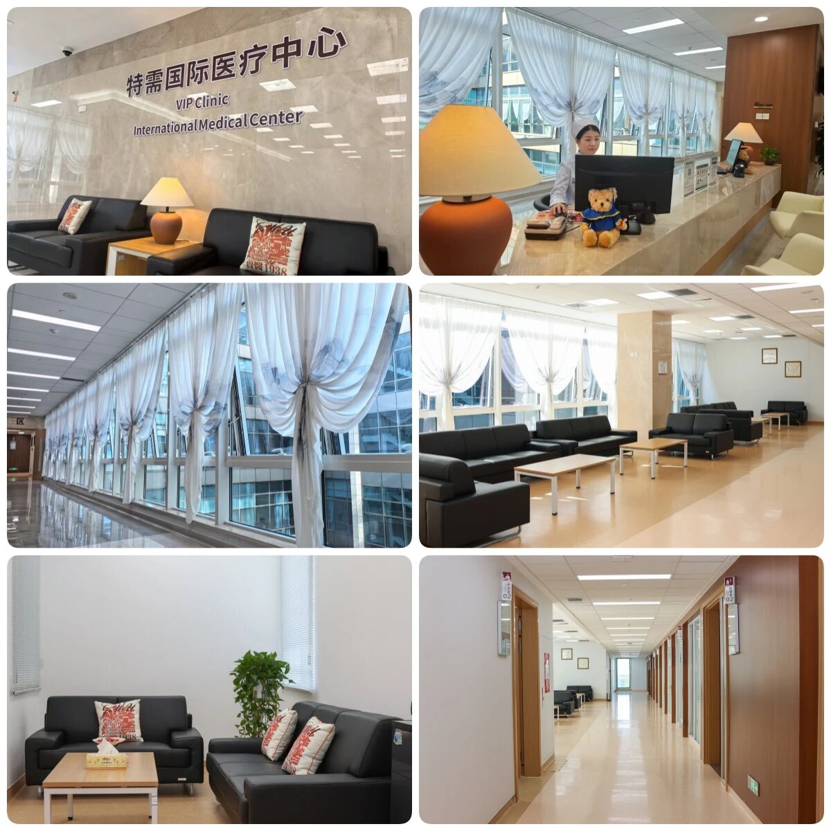 特需国际医疗中心现有独立的VIP病房、特需门诊诊区,总面积达8726.76㎡,其中特需门诊面积2171.01㎡,特需病房面积为6814.93㎡。特需国际医疗中心门诊位于门诊楼二楼,内含诊室14间,拥有独立的药房、挂号收费窗口、心电图室、B超室、特需等候区、多学科联合会诊室、采血室及治疗室、专用进出通道等。