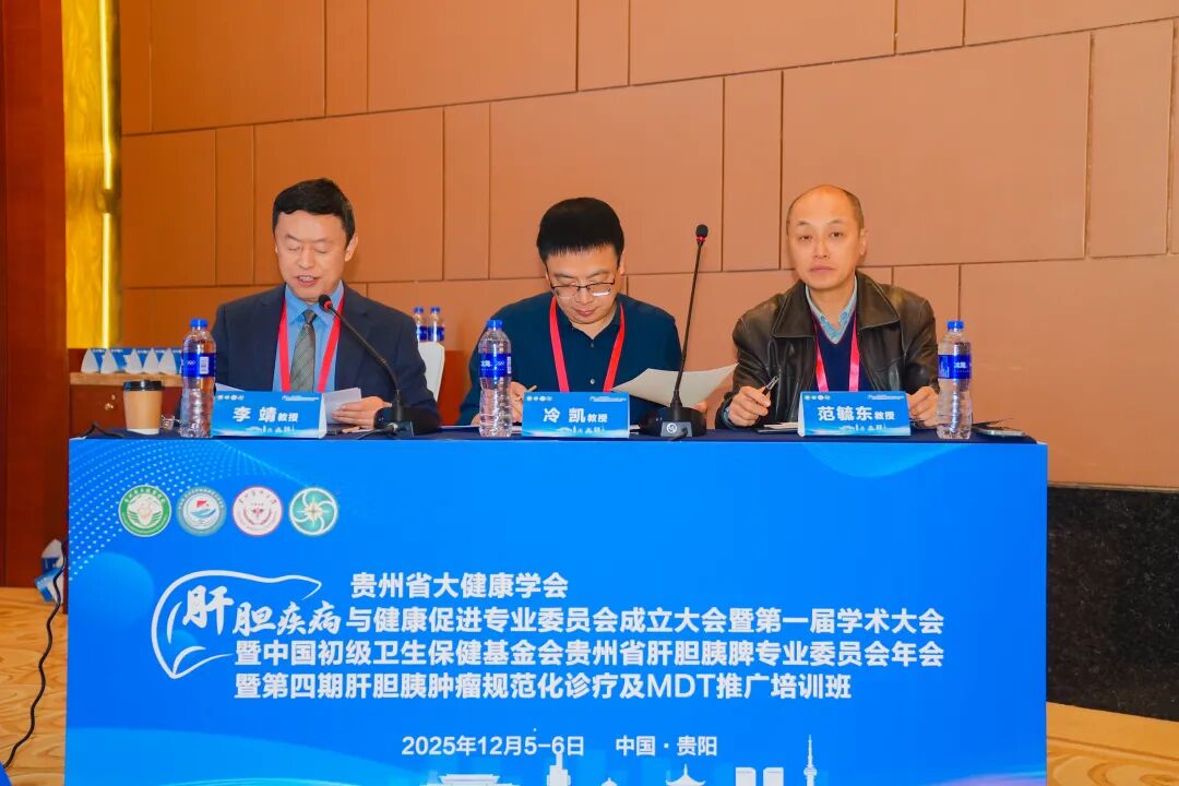 2025年12月5日至6日,由贵州省大健康学会主办,贵州医科大学附属肿瘤医院、中国初级卫生保健基金会贵州省肝胆胰脾专业委员会共同承办的“贵州省大健康学会肝胆疾病与健康促进专业委员会成立大会暨第一届学术大会暨中国初级卫生保健基金会贵州省肝胆胰脾专业委员会年会暨第四期肝胆胰肿瘤规范化诊疗及MDT推广培训班”在贵州贵阳圆满落幕。会议聚焦肝胆胰脾疾病领域的前沿突破、临床实践、多学科协作与学科发展的学术交流活动,汇聚省内外医学专家,共同提升贵州省肝胆胰脾疾病的防治水平,为“健康贵州”建设注入强劲力量。