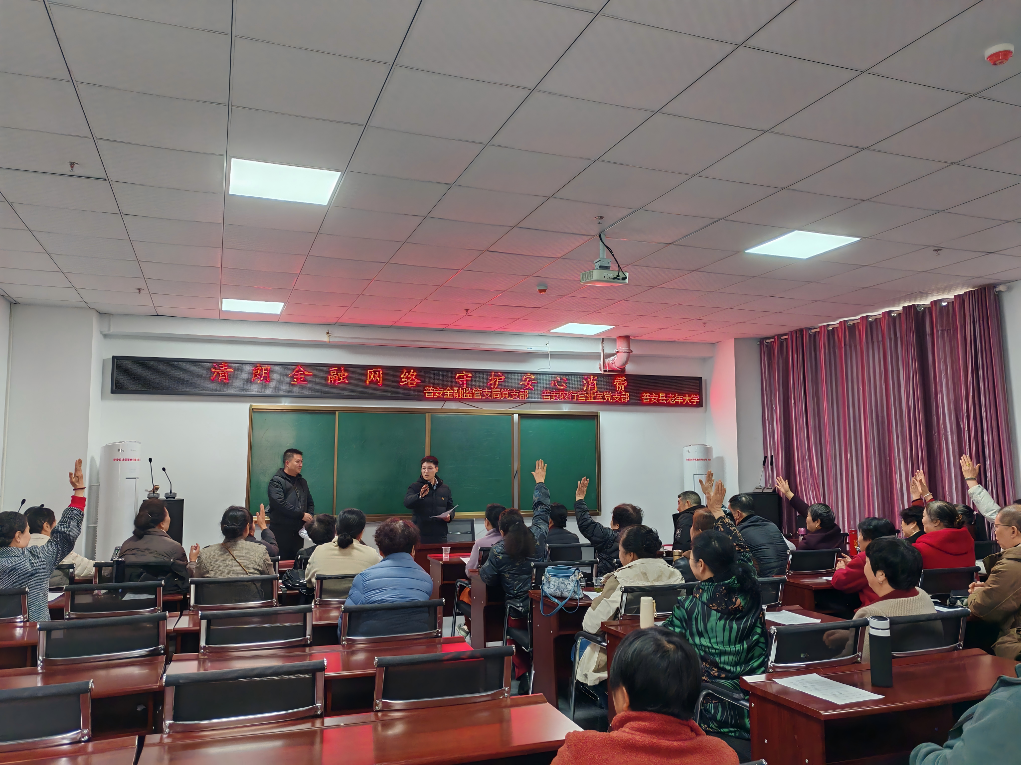 同日,农行普安县支行营业室党支部与普安金融监管支局党支部走进当地老年大学,采用“视频教学+现场讲解+有奖问答”三重模式,用接地气的方言讲解防骗口诀,现场模拟诈骗话术场景,让老人们在轻松愉悦的氛围中快速掌握防骗技巧。