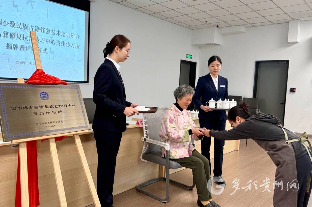 同一天,传统拜师仪式庄重举行,全国少数民族古籍修复技术培训班也同步开班。这不仅为贵州古籍保护注入“国家级”力量,更标志着贵州正迈向全国古籍保护的“主阵地”。