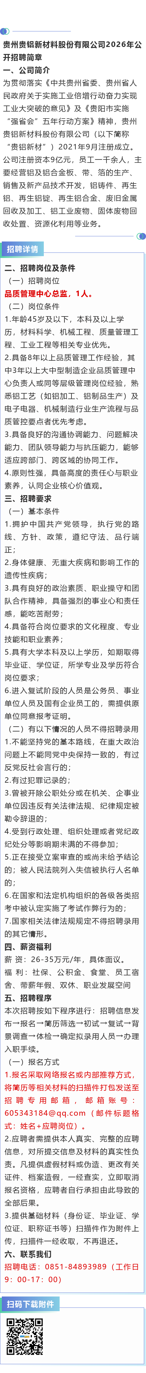 【国企】贵州贵铝新材料股份有限公司招聘!年薪26-35万元!周末双休!