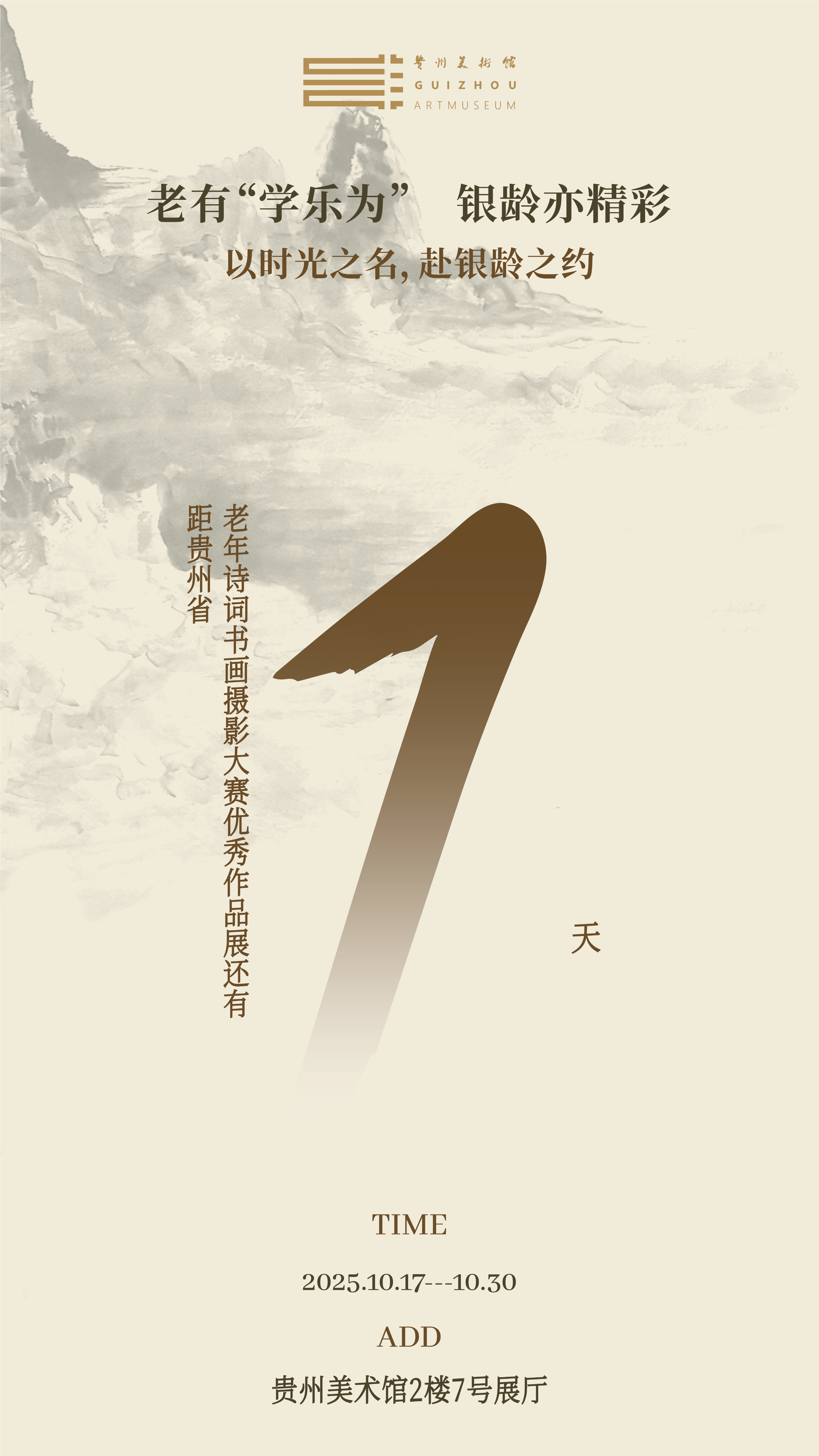 重阳点染秋光,翰墨浸润流年。在这个满载敬意的十月,当“敬老月”的温情与银龄艺术的光华相遇,“老有‘学乐为’,银龄亦精彩”——贵州省老年诗词书画摄影大赛优秀作品展,将于2025年10月17日至30日,在贵州美术馆二楼七号展厅优雅启帷。