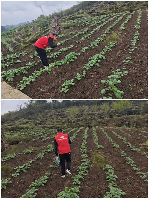近日,人保财险贵阳开阳支公司的农险工作人员深入永温镇开展马铃薯上门验标承保服务。验标现场,工作人员跟随农户徒步穿行于田垄之间,对照投保清单,逐块核实种植面积、作物品种,并拍摄现场影像存档,确保承保信息都真实、准确。