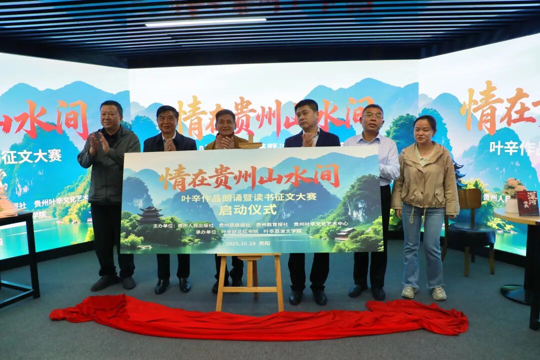 10月19日下午,《情在贵州山水间—叶辛作品朗诵暨读书征文大赛》启动仪式在贵阳举行。中国作家协会原副主席叶辛,贵州省政协原副主席班程农,贵州日报当代融媒体集团副总经理兼贵州教育报社长马小成,贵州人民出版社纪委书记龙亚海,贵州民族报副总编辑熊瑾瑾,叶辛好花红书院、叶辛荔波文学院院长刘学文共同出席启动仪式,并共同为活动启动,正式拉开这场文学与山水交融的文化盛宴序幕。