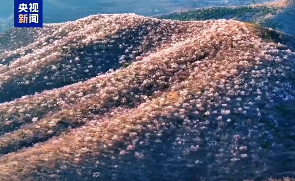 近日,山西晋城高都镇漫山遍野的山桃花悄然盛放,极目望去,太行山山峦被连片山桃花轻柔披上一层粉色霓裳,粉白交织、绵延起伏,宛如壮阔的粉色海洋。(总台记者 李楠 宋振兴)
