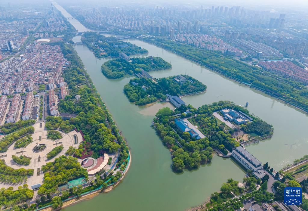 4月27日拍摄的位于江苏省扬州市江都区的南水北调东线源头江都水利枢纽(无人机照片)。