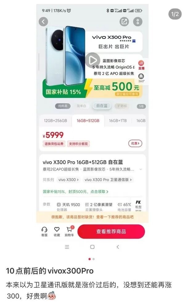 记者以消费者身份咨询vivo淘宝官方旗舰店客服,对方证实部分机型价格已经调整。“目前X300 Pro和iQOO 15的价格确有变动,店铺已统一执行最新官方价格。”客服称,此次调整主要受“全球半导体及存储成本持续上涨”的影响,属于行业普遍面临的成本压力。