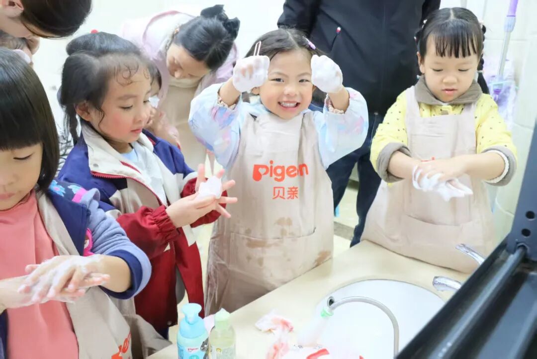 本次活动创新引入了“动物城清洁行动”沉浸式亲子工作坊,将健康知识科普巧妙融入一场充满童趣与挑战的剧情闯关游戏中,开启了一场别开生面的健康保卫战。孩子们在贝亲导师指导下学习“七步洗手法”,利用牙齿模型练习“巴氏刷牙法”,在家长帮助下学习涂抹润肤乳。整个活动现场欢笑不断,孩子们在角色扮演和游戏闯关中,主动学习并内化了健康知识。在“水果派对”环节,家长和孩子共同动手制作健康茶饮与水果点心,在欢声笑语中引导孩子认识食材、爱上喝水,培养了健康的饮食习惯。这些沉浸式体验活动,正是贵州省妇女儿童服务中心倡导的“在陪伴中教育,在体验中成长”现代家庭教育理念的生动实践。